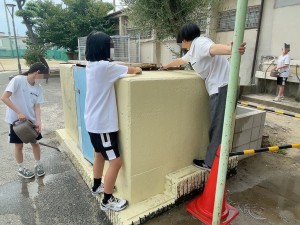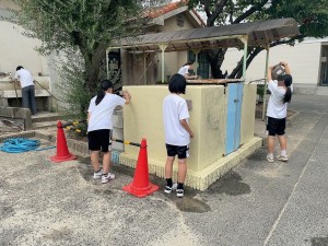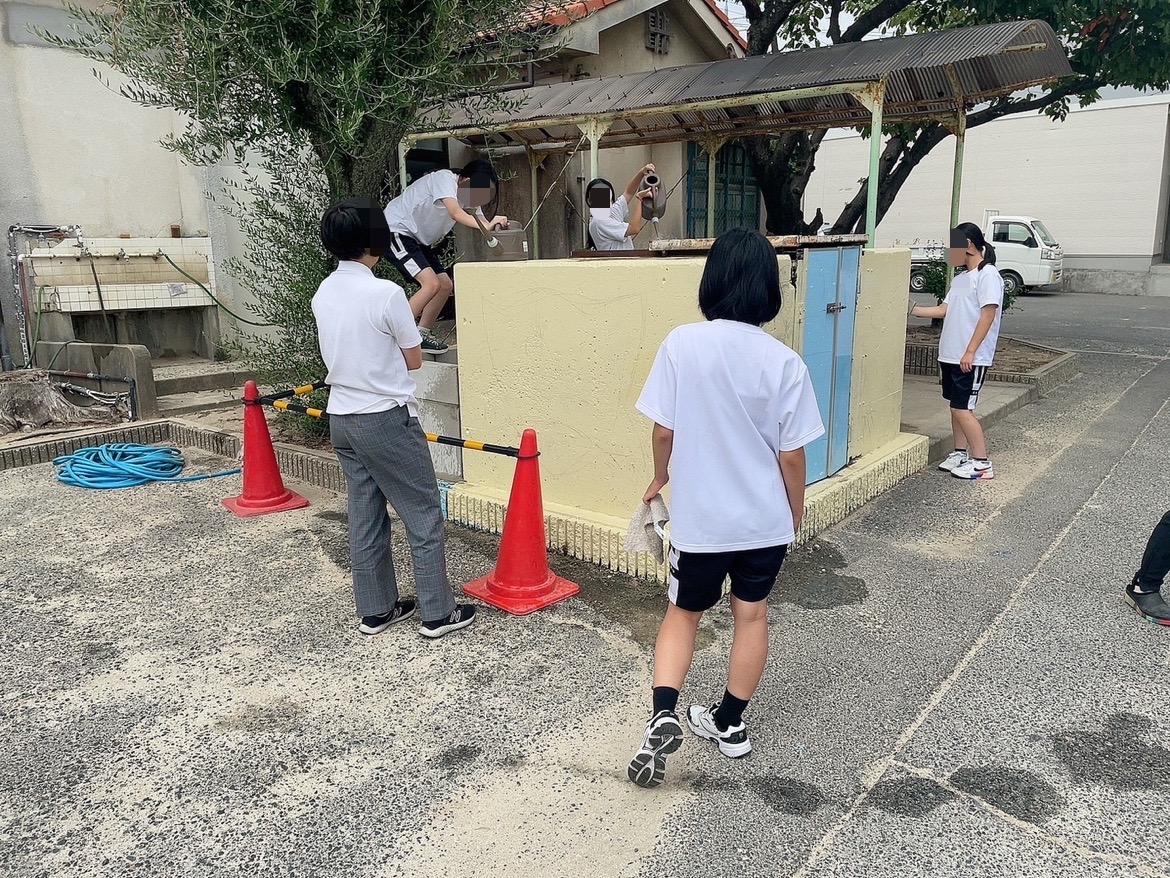 本日、岸城中学校のゴミ置き場を有志の生徒5名が掃除してくれました!