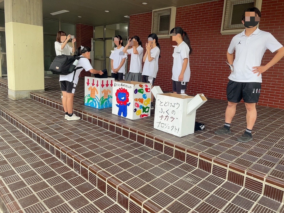 服の力プロジェクトで、生徒会執行部は、朝の挨拶運動とともに服の回収の声掛けを行ってくれています!