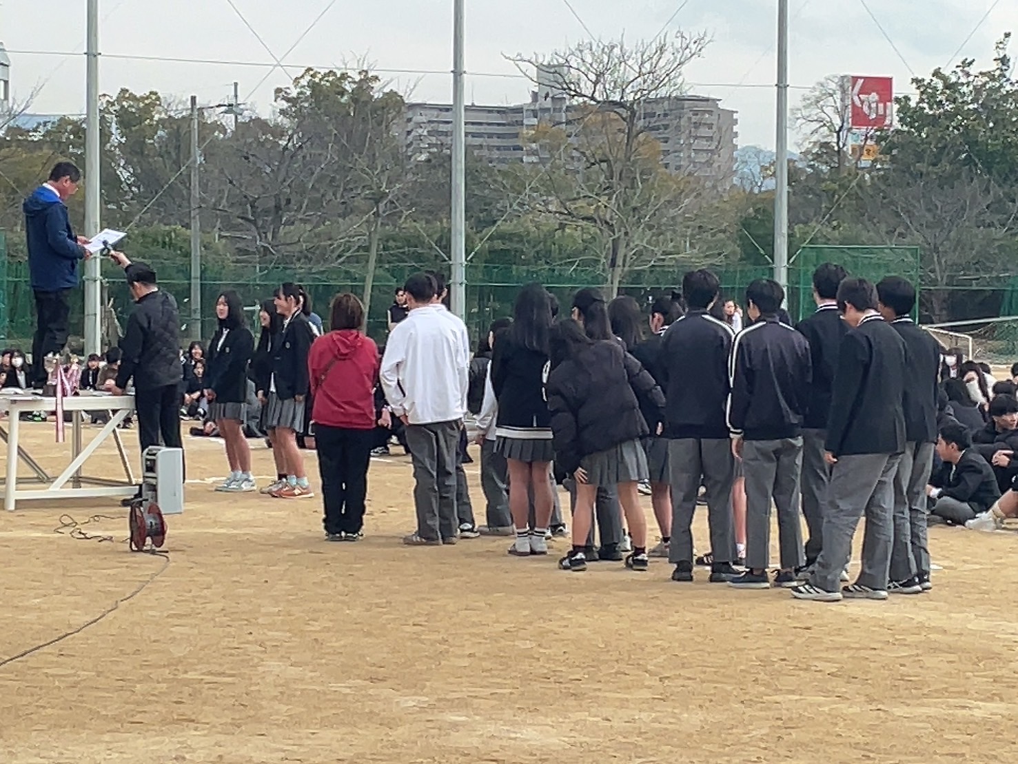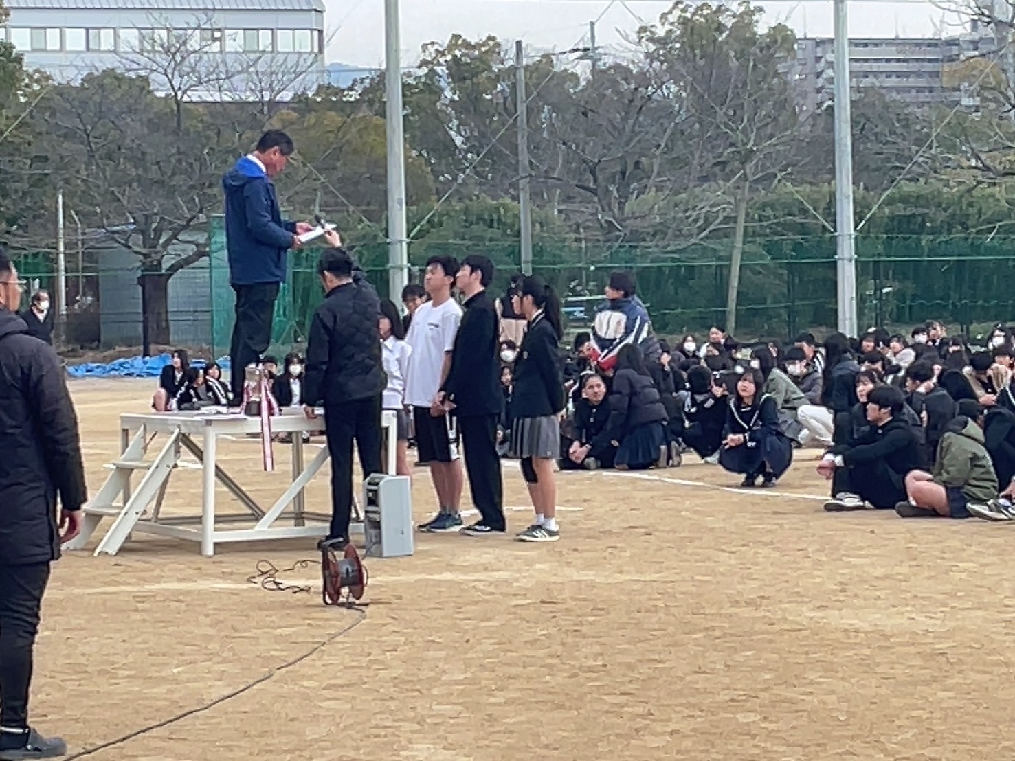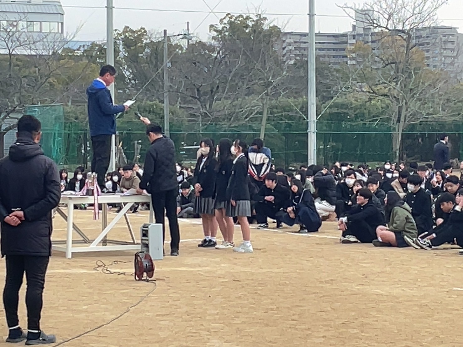 外での全校集会は久しく、職員も新鮮な気持ちで臨むことができました。