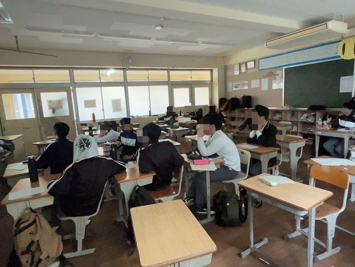 本日は、2年生女子が午後に水泳授業を行ったため、男子は学校に残り人権学習を行いました。