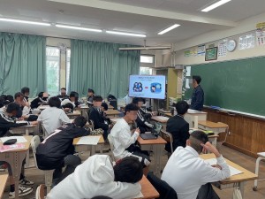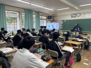 本日は、2年生女子が水泳のため、男子は残ってSNSモラルの授業をしました。