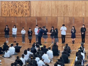11/17(月)の1限目に後期の生徒会と専門委員の任命式が行われました。